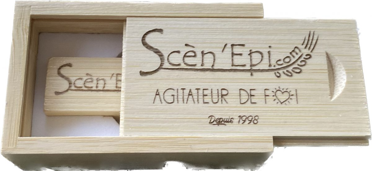 Clé USB Scèn’Epi fabriquée en France et gravée au Laser en Auvergne.